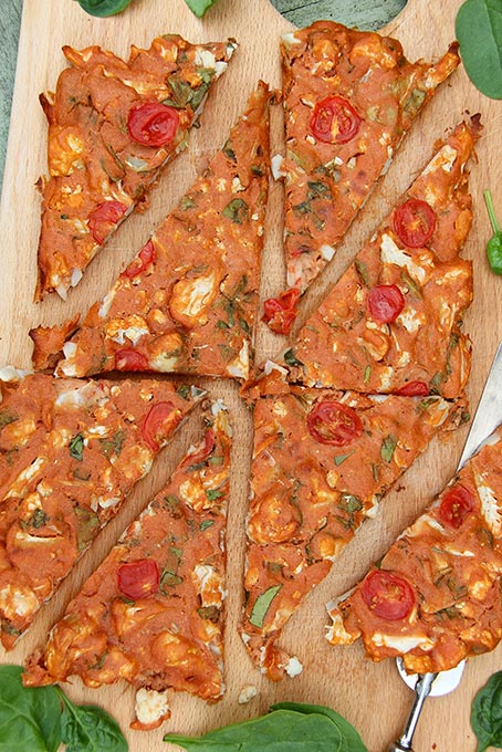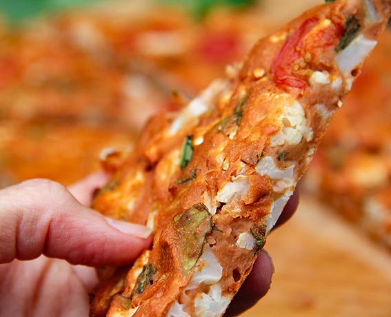 A baked vegan alternative to fried frittata using cauliflower and chickpea flour.