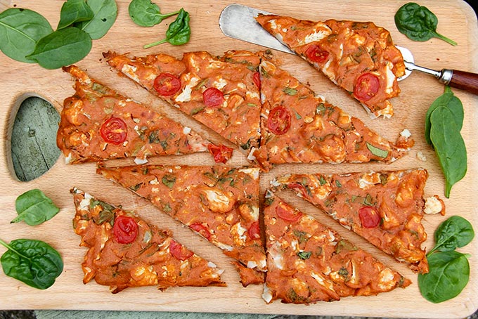 A baked vegan alternative to fried frittata using cauliflower and chickpea flour.