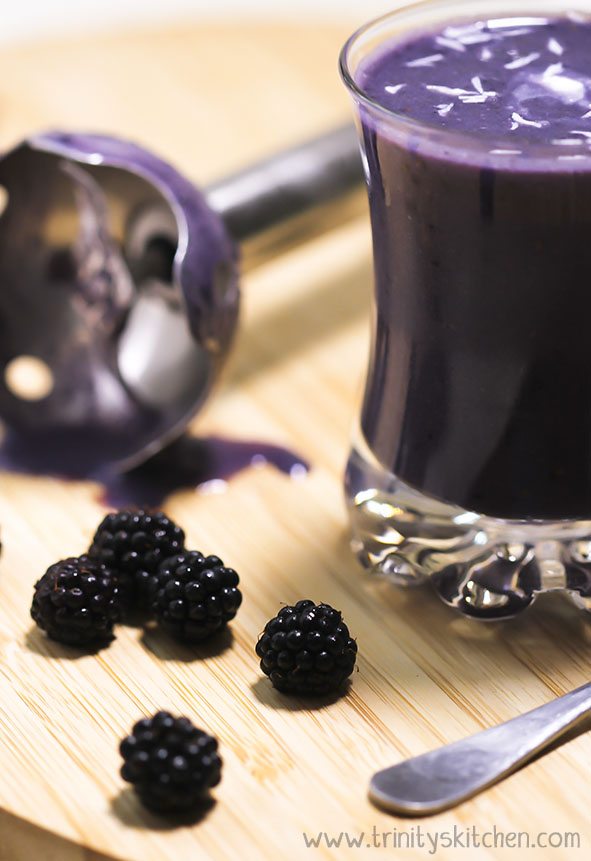 An absolutely delicious blackberry, coconut, plant-based smoothie recipe.