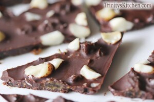 Step Seven: Place chocolate into the fridge for a minute or two (not longer) to start chilling whilst you chop the mac nuts. Roughly chop your nuts (or leave whole if preferred).