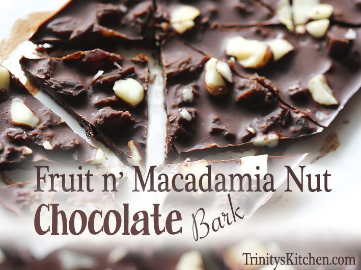 Macadamias are my favourite nut ever. They vary in quality and taste although I recently stocked up on some super tasty ones during my latest trip to Hawaii… and couldn’t resist making a batch or two of this delectable recipe. ‘Fruit n’ Mac Nut Chocolate Bark’ makes a perfect gift for a friend or loved one. Ideal for a special occasion or a ‘just because I love you’ moment. It’s also a great way to treat yourself to a little healthy indulgence too… because as far as chocolate goes you aren’t going to a find a much healthier recipe than this one.