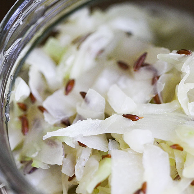 Homemade sauerkraut in a jar - Caraway Seed Version