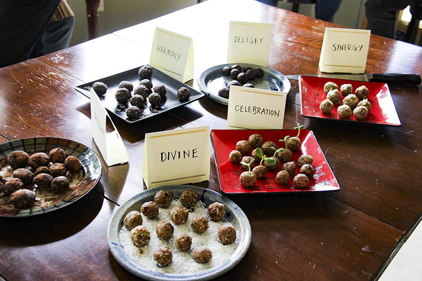 (PHOTO: Lots of different energy balls made with my workshop group on Vancouver Island)