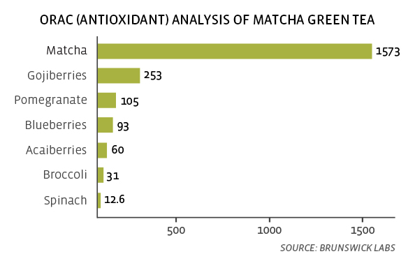 Matcha is very high in antioxidants, which are said to prevent cell damage and lower the risk of certain diseases.