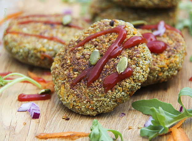 An easy sweet potato hemp burger with pumpkin seeds and coconut.