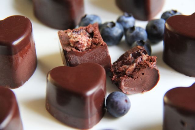 If you want to really go that extra mile for vegan easter, then buy a heart-shaped chocolate mold and make these soft centred Raw Chocolate Blueberry treats. Also works well with raspberries…