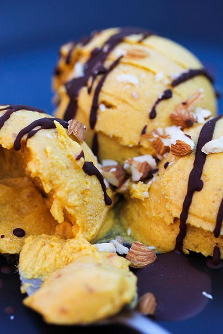 Easy vegan mango coconut milk ice cream with only three ingredients. Dairy free and naturally sweetened.